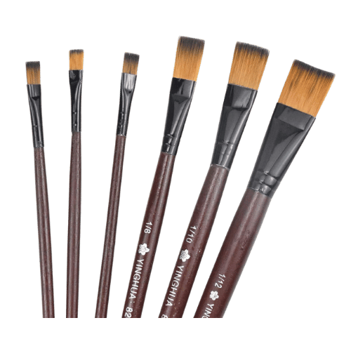 Yasmous 301-05814 Artist Brush Set, Nylon Acrylic Paints, Flat Brush, School Painting Brush Set, Wooden Handle Brush, Artist for Acrylic Oil, Watercolour, Gouache Painting, Size 2/4/6/8/10/12, Brown,