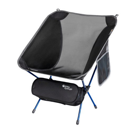 P&J Trading EyrieLight Outdoor Chair – Compact and Lightweight for Backpacking, Camping, Hiking, Beach, Festivals, Tailgating, Kids Sports, Backpacking - 1.89lb (Black with Blue Legs)