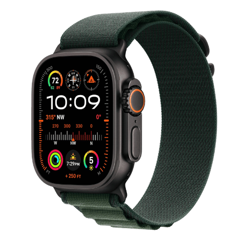 Apple Watch Ultra 2 GPS + Cellular 49mm Smartwatch, Sports Watch with Black Rugged Titanium Case and Dark Green Alpine Loop - M. Fitness Tracker, Precision GPS, Extra-Long Battery Life, Carbon Neutral