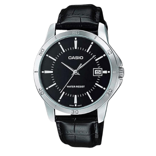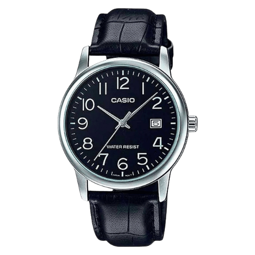 Casio Men's Black Dial Leather Band Watch - MTPV002L-1B