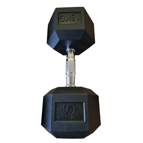 BodyRoc Dumbbells Weights (Range 2.5kg - 30kg)–Rubber Encased Cast Iron Hex DumbbellsWeights Sets - Home Gym Workout Fitness Equipment for Men & Women - Weight Strength Training (15 KG - Single)