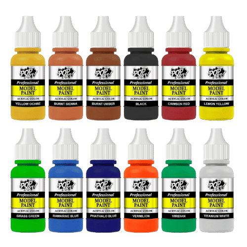 POP ART Model Paint Water Based Acrylic Colors Set of 12 Colors for Brush and Airbrush Painting of 3D Prints, Plastic, Resin,Miniatures and All DIY Projects (30 ml)