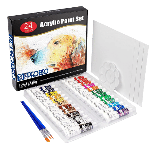 THE PRO BRO Acrylic Paint Set, 24 Vivid Colors (12ml) Art Craft Paint Supplies for Canvas Wood Ceramic Rock Painting, Rich Pigments Non Toxic Paints for Kids Beginners Students Adults Artist Painter