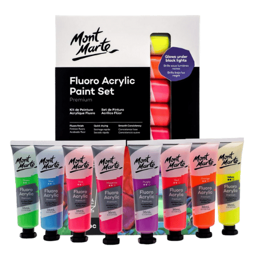 Mont Marte PMFL8361_V02 Premium Fluoro Acrylic Paint Set of 8 Colors 36ml Per Tube for Artists - Multi Color