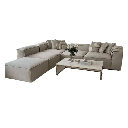 Sofa L Shape With Free 2 Poufs