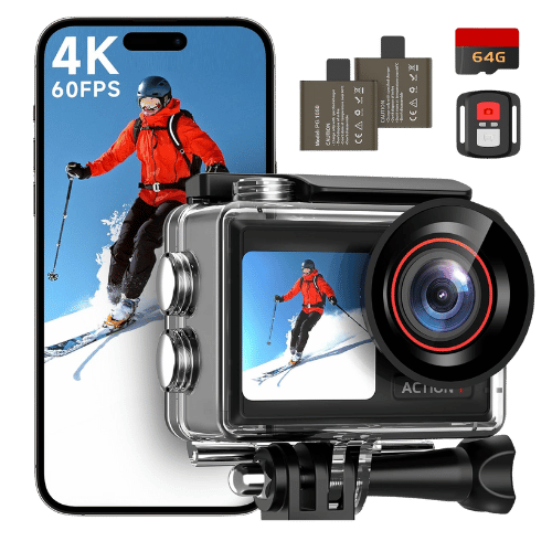 ODDV 4K60FPS 30MP Action Camera with Front LCD and Rear Touch Screens, Underwater Camera with 64GB Memory Card, 132ft Waterproof Camera, EIS, 5X Zoom, Remote Control