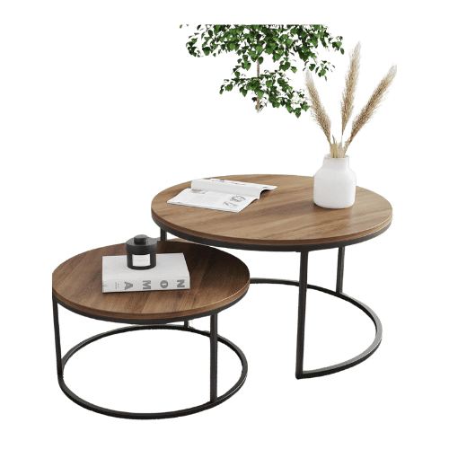 Woodx NOMA Modern Nesting Coffee Table Set of 2, Round Industrial Wood and Metal Accent Tables for Living Room