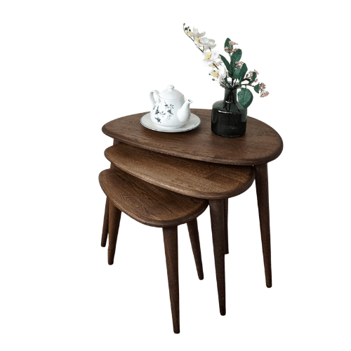 Ultimate Premium Products Solid Nesting Table Set of 3- Oak Mid Century Pebble Tables with Tapered Legs – Wooden Home Furniture in a Retro Style - Oak