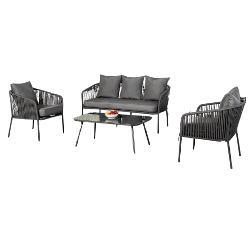 Furniture of America Serenade Metal 4-Piece Patio Conversation Set, Gloss Table Top, Chairs and Loveseat with Removable Cushions for Porch, Backyard, Lawn, Garden, Light Gray
