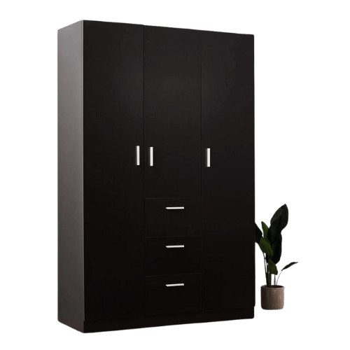 Panana Modern 3 Doors 3 Drawers Wardrobes with Hanging Rail Large Triple Clothes Storage Cupboard Unit for Home Bedroom, Black