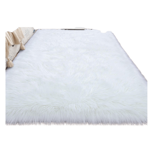 HEQUN Non-Slip Faux Fur Rug, Fluffy Rug, Shaggy Rugs,Faux Sheepskin Rugs Floor Carpet for Bedrooms Living Room Kids Rooms Decor (White, 75 X 120 CM Square)