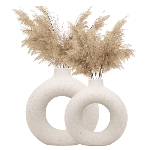 INDULGE HOMES - White Vase/Flower Vase/Pampas Grass Vase/Ceramic Vase/Round Shaped Vase/Home Decor Centrepiece/Decor Showpiece Donut Vase 6 & 8 Inches (Pack of 2)