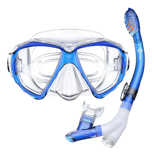 ProsportQ Snorkel Mask with Dry Top Breathing System, Panoramic 180° Foldable Tempered Glass Diving Goggles Anti-Fog Anti-Leak for Adults and Youth - Snorkel Mask