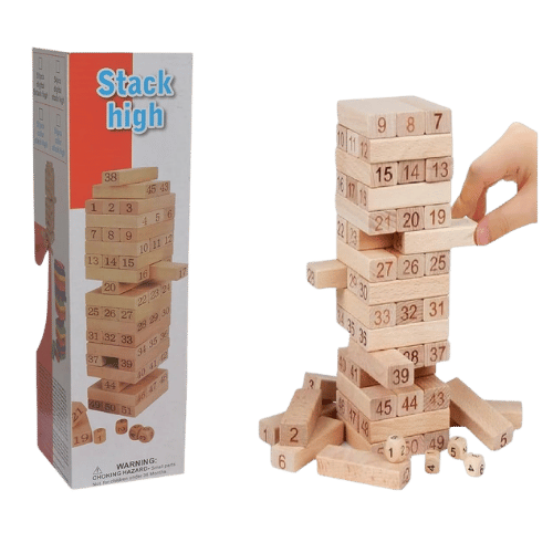 Kids Time High Stack Wooden Block Game - 54 Pieces Classic Numbered Tower Game for Kids, 1 or More Players