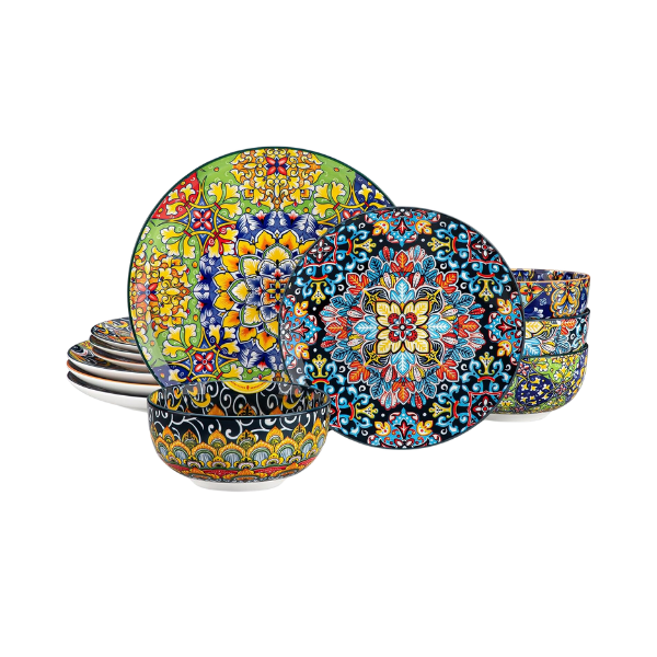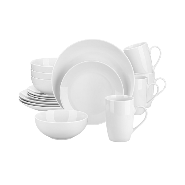 MALACASA Luna Series 18-Piece Porcelain Dinner Set for 6 People with Large Dinner Plates, Dessert Plates, Bowls, Round White Plate Set