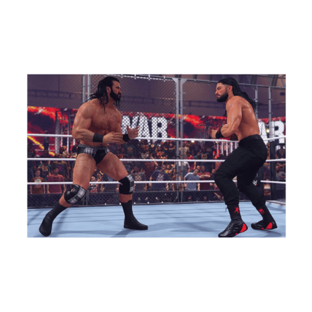 IT’S ALL-OUT WARGAMES This fan-favourite action-packed match type makes its debut in WWE 2K23 and delivers heart-pounding 3v3 and 4v4 multiplayer mayhem inside two side-by-side rings, surrounded by a double-steel cage!